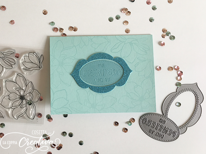 In alto a destra ho “costruito” il mio sentiment, prendendo diverse paroline e mettendole insieme.. lo trovo fantastico questo set di timbri!!! Si riescono a comporre i sentiment che più ci piacciono!!!