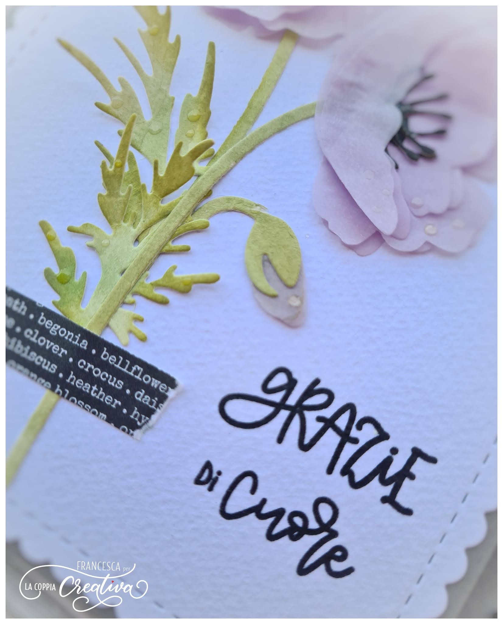 fustella Papavero, fustelle Rettangoli smerlati, timbro Auguri di cuore