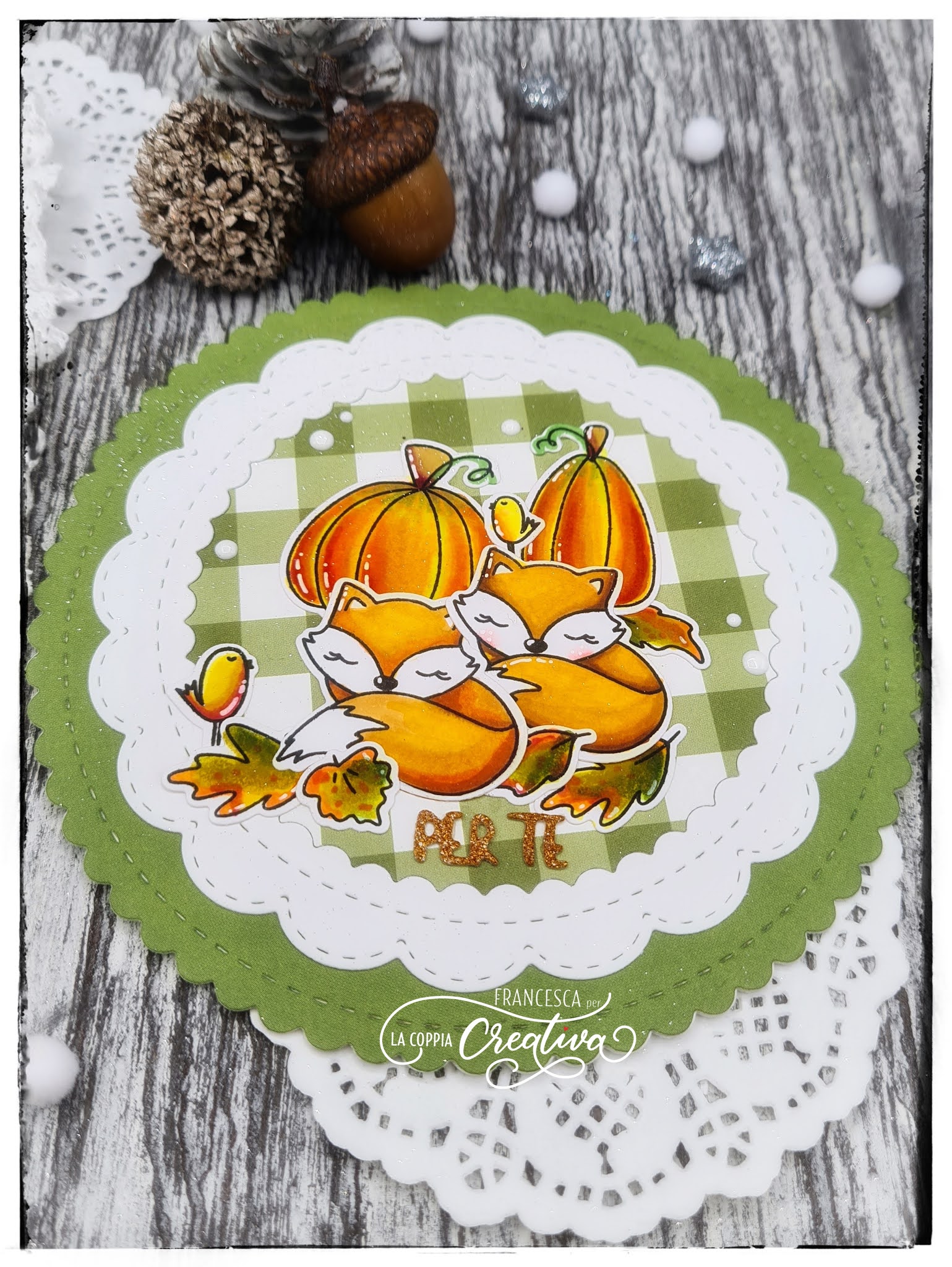 Fare card con questo tema per me e’ altamente consolatorio. Mi piace proprio un sacco. E sono davvero molto contenta che quest’anno nella release de La Coppia Creativa ci sia una plate di timbri dedicata a questa stagione. Le zucche sono adorabili e molto facili da colorare.