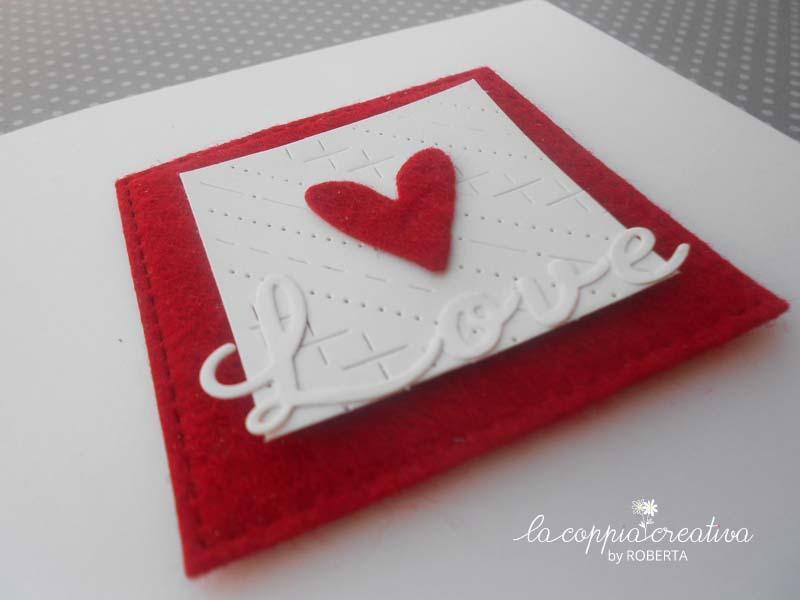 per questo post un’altra idea per una card molto “love”, cartoncino bianco e feltro rosso sono i due materiali che ho utilizzato: