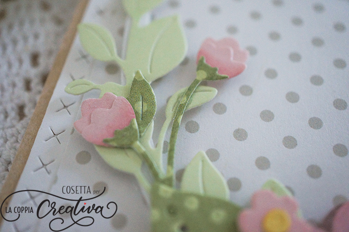 Ora, grazie al contrasto dei colori, il fiore ed il sentiment saltano subito all’occhio. Sarebbe successa la stessa cosa se avessi invertito i colori, cioè se avessi colorato tutta la patterned e avessi messo in risalto il fiore solo stampato etc.