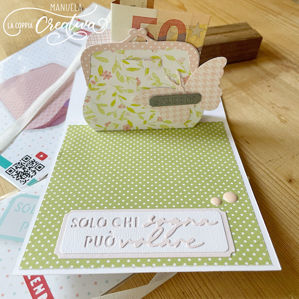 Benritrovati! Vi sarà capitato di voler regalare dei soldini e non sapere dove metterli, volendo evitare una banale busta. La nuova collezione di Tina ci viene in aiuto! Ho usato la nuova fustella “borsellino”, leggermente modificata, per realizzare una card pop up portasoldi.