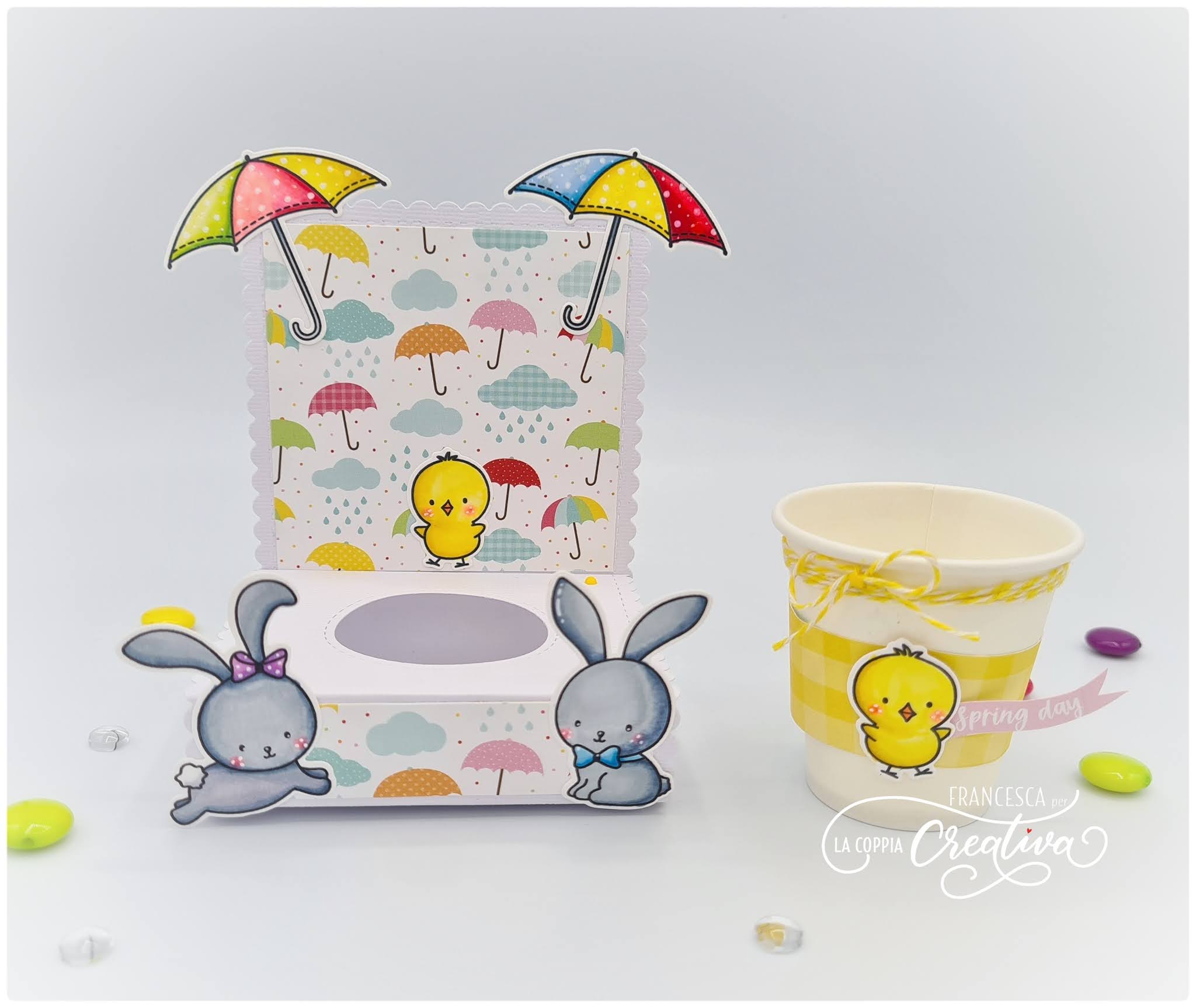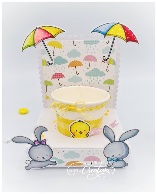 Sul davanti ho incollato un quadrato 16×16 di carta a righe gialle e bianche; prima pero’ ho creato il meccanismo “pop-up”, quindi attenzione quando incollate!