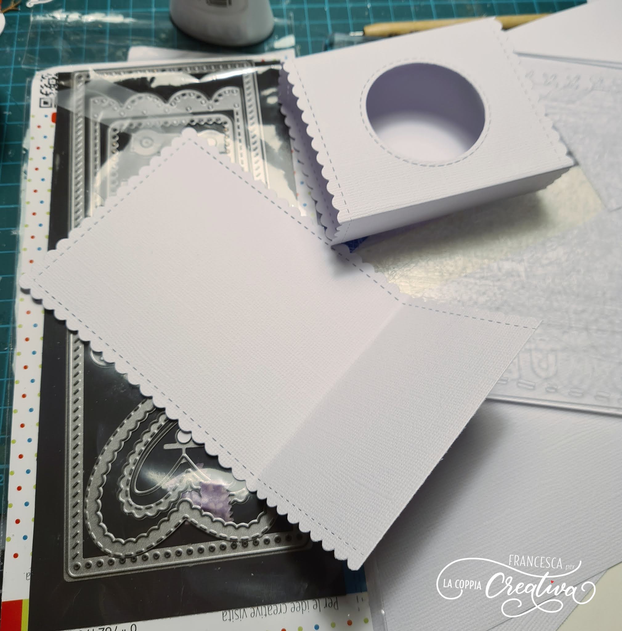 Come solito quando arriva il pacchetto con le novita’, scelgo per il primo progetto quello che mi colpisce al primo sguardo… e questa volta sono partita dalla fustella “effetto 3D”! Ne e’ nato un piccolo raccoglitore a soffietto… che diventera’ per esempio un “minialbum destrutturato”.
