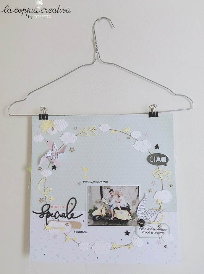 Ho fustellato poi un pezzo di cartoncino bianco a pallini celesti, con la fustella che realizza i bordi come un francobollo.. la trovo adorabile!!! ^_^