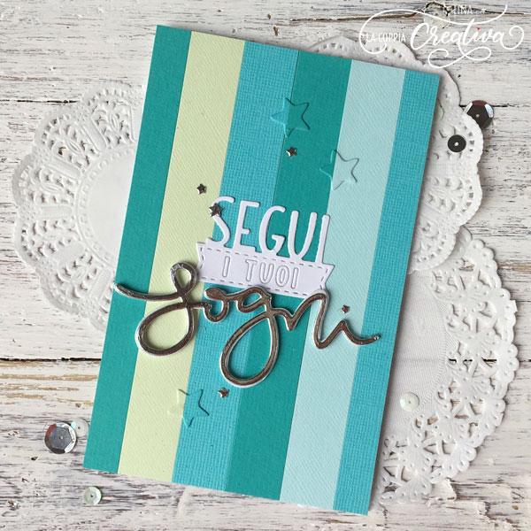 …la fustella “segui i tuoi sogni” è diventata una delle mie preferite in assoluto, solo il fatto di leggere questa frase tutti i giorni è uno stimolo a impegnarsi sempre di più in ciò che si ama ed ecco perchè l’avevo scelta per il mio mini midori .. ed oggi rieccola qui tra tante stelline oro e argento:
