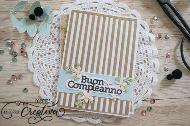 Per queste card ho usato la fustella “Strisce creative“ per creare lo sfondo, ho scelto il tono su tono del kraft, ma si possono creare tantissimi sfondi colorati ed originali…