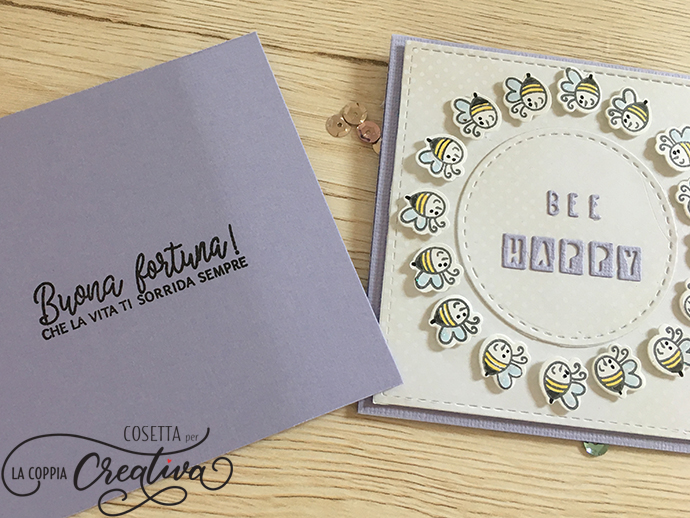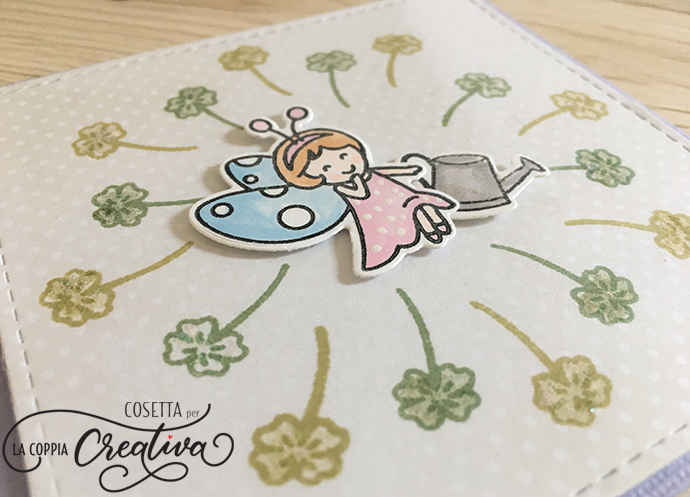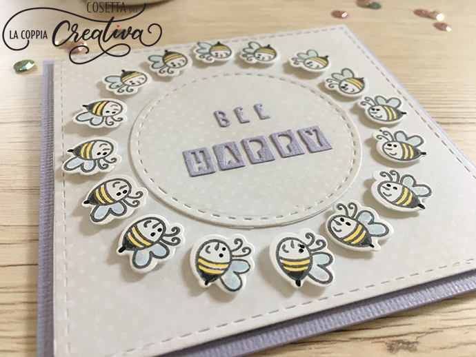 Per la base della card ho fustellato su bazzill bianco lo sfondo con le crocette del set posta felice per te, comodissimo perché è già della misura giusta per i nostri biglietti.