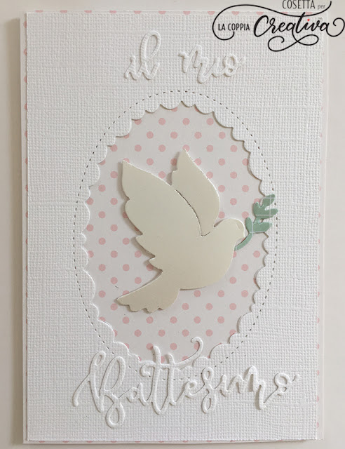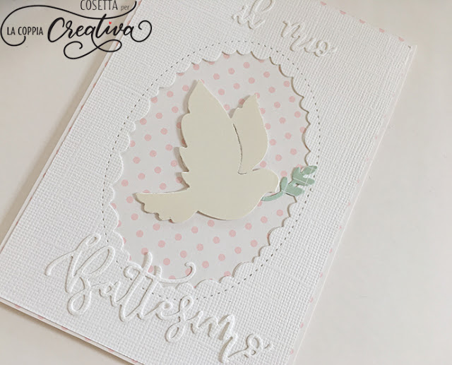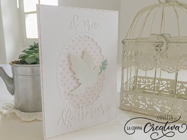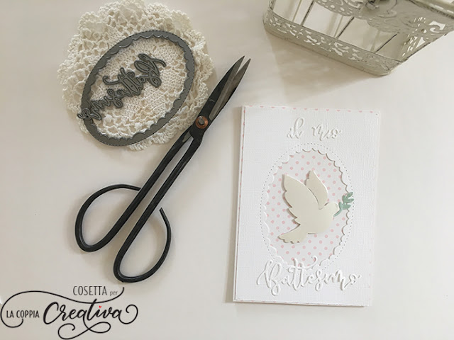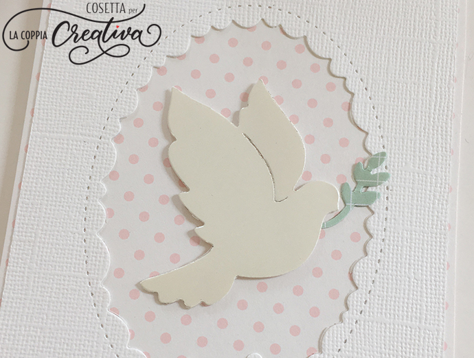 Le nuove fustelle degli ovali creativi si adattano benissimo a tutte le tipologie di card e danno un po’ di movimento ai nostri sfondi. La colomba è perfetta per le cerimonie religiose…