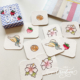 La card è quadrata e si apre da sinistra a destra; nessuna busta, ma una striscia di vellum pesante per racchiuderla. Come decorazione i papaveri e un sentiment; all’interno del vellum su cui scrivere.