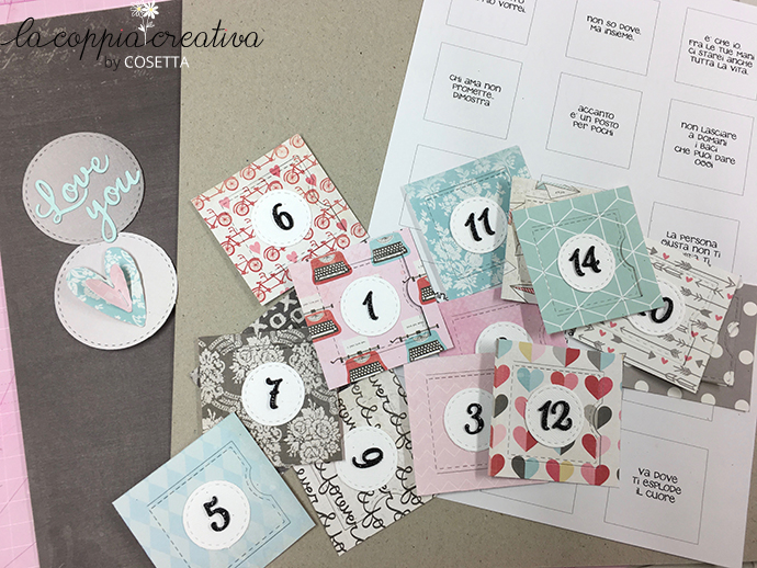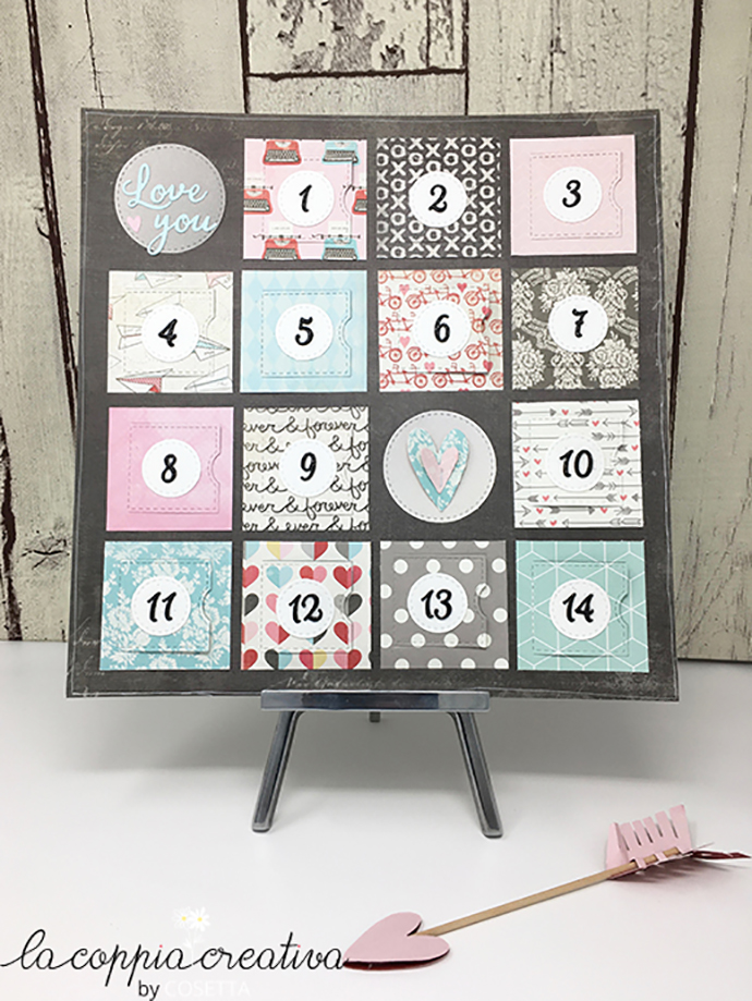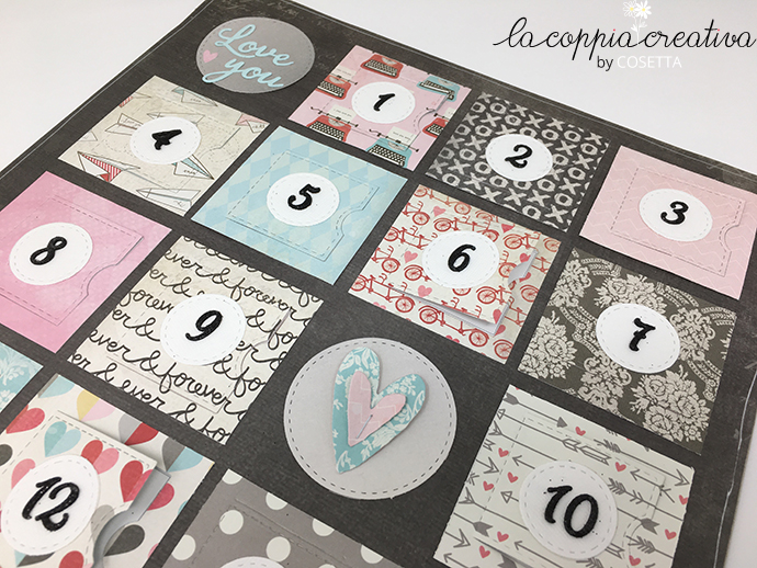 Si tratta di una pagina in stile “calendario dell’avvento”… in modalità San Valentino… Volevo farne una già a Natale, ma tra i mille preparativi non ce l’ho fatta… Prendete nota per l’anno prossimo! Spero tanto che mio marito non guardi il blog in questi giorni, se no… addio sorpresa…