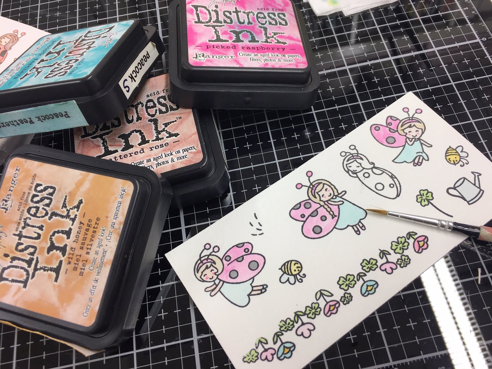 Per la colorazione ho usato i Distress Ink, le carte sono di Lawn Fawn