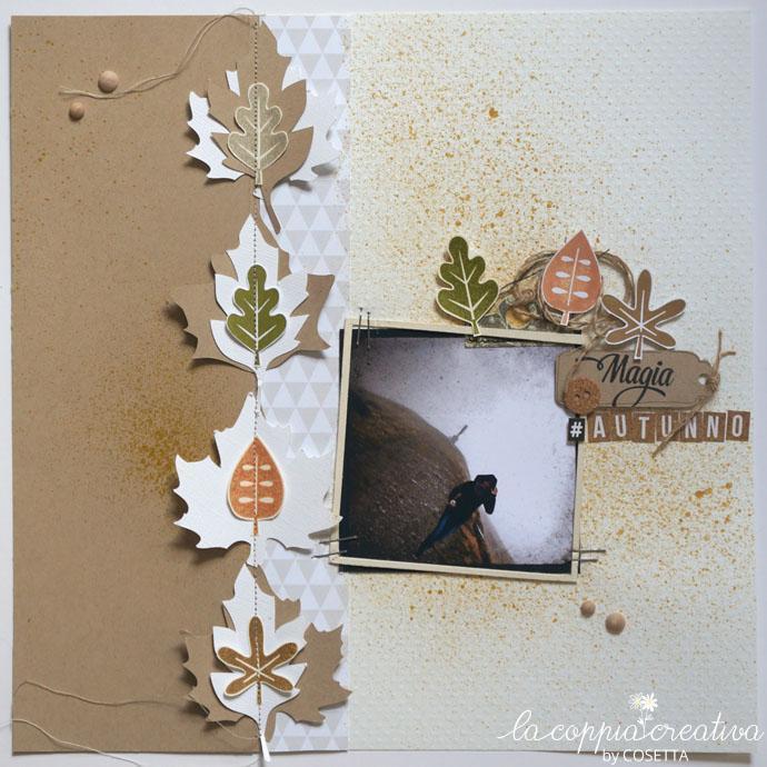 Oggi vi mostro un Layout moooolto autunnale… Come avrete ormai capito adoro il set di timbri “Autunno” della nuova collezione di La Coppia Creativa… Vi ho proposto queste bellissime foglie in tutte le salse, mancava solo una pagina 12×12…